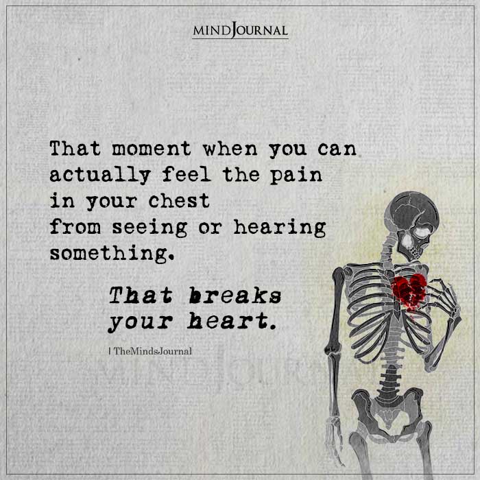 That moment when you can actually feel the pain in your chest from seeing or hearing something. That breaks your heart.