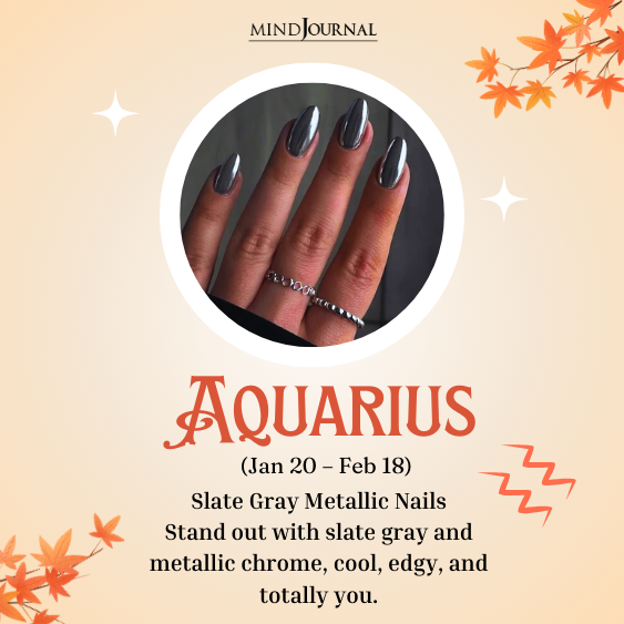 Aquarius, you love being ahead of the trend, so slate gray metallic nails are the perfect balance of futuristic and seasonal. The cool-toned gray gives you edge, while the metallic finish adds that innovative spark you’re known for. Think chic, cosmic, and a little rebellious.