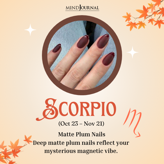 8. Scorpio (Oct 23 – Nov 21) – Matte Plum Nails