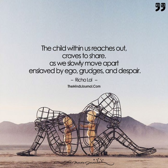 The Child Within Us Reaches Out, Craves To Share. As We Slowly Move Apart Enslaved By Ego, Grudges, and Despair