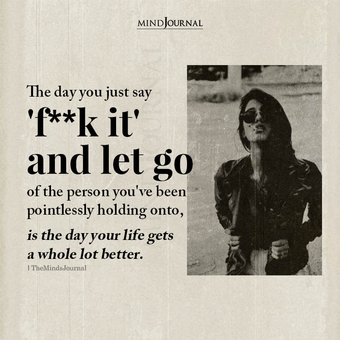 The day you just say ‘f**k it’ and let go of the person you’ve been pointlessly holding onto, is the day your life gets a whole lot better.