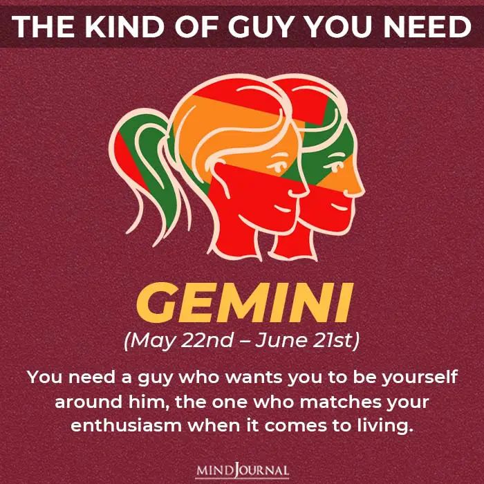 You need a guy who wants you to be yourself around him, the one who matches your enthusiasm when it comes to living.
