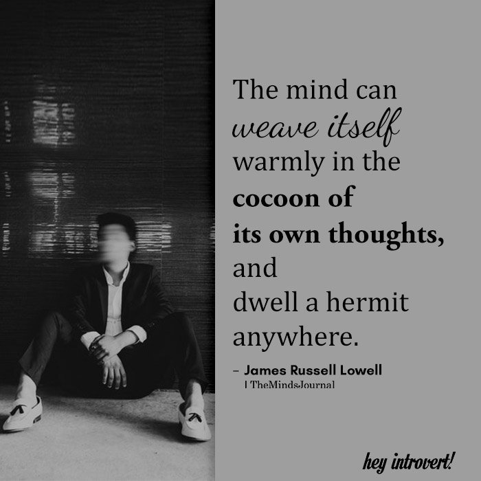 The mind can weave itself warmly in the cocoon of its own thoughts, and dwell a hermit anywhere.