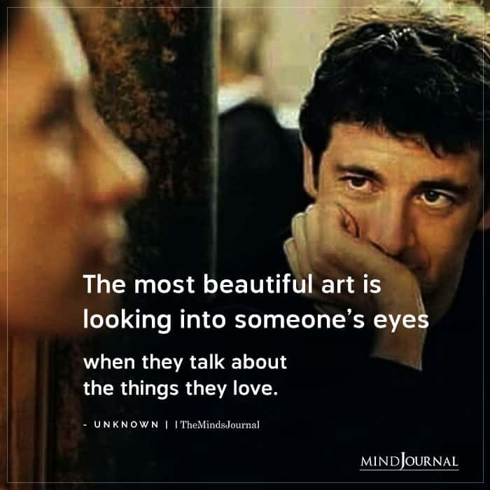 The most beautiful art is looking into someone’s eyes when they talk about the things they love.