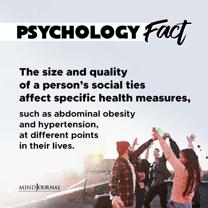 The size and quality of a person’s social ties affect specific health measures, such as abdominal obesity and hypertension, at different points in their lives.