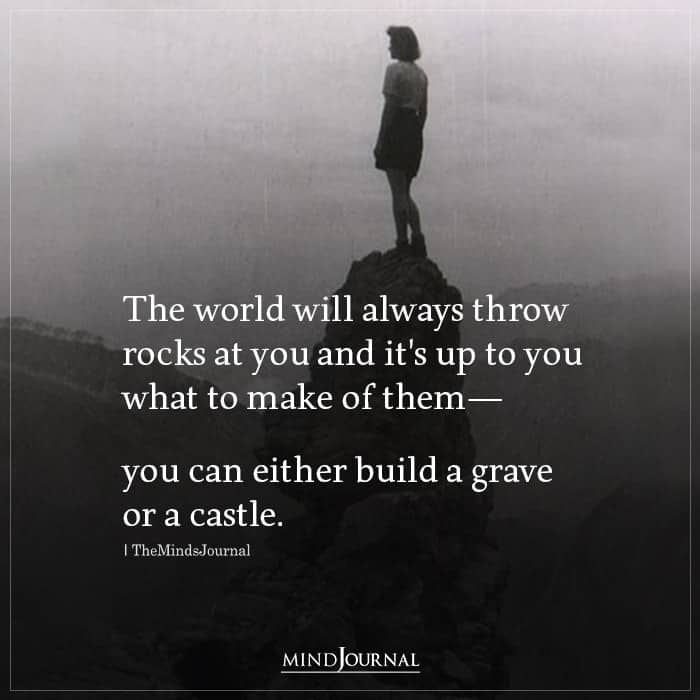 The world will always throw rocks at you and it’s up to you what to make of them— you can either build a grave or a castle.