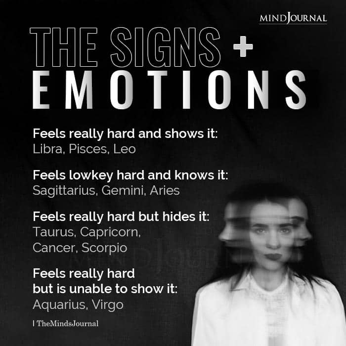 Feels really hard but hides it: Taurus, Capricorn, Cancer, Scorpio