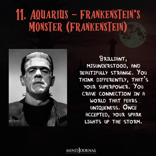 Quirky, misunderstood, and ahead of your time, these are just some of the words to describe you, Aquarius. So naturally, if we are talking about zodiac signs as horror movie characters, you are Frankenstein’s Monster made human.