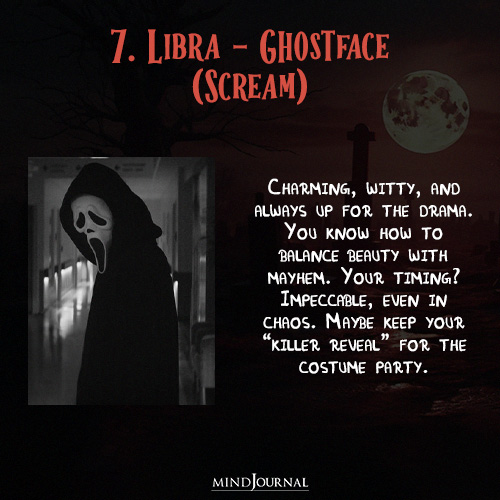 Which horror movie character are you, Libra? Well, let’s see, you are witty, gregarious, and enjoy a touch of intrigue, and whether people realize it or not, Libra, you are actually more calculating than they give you credit for.