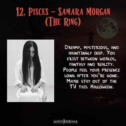 Soft-spoken but spooky when you want to be – Pisces, you are the haunting calm before the chaos. When it comes to zodiac signs as horror movie characters, you embody Samaraโs eerie, dreamlike energy.