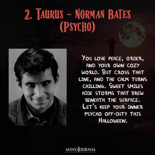Naturally, Norman Bates from Psycho is your vibe โ calm on the surface, storm brewing underneath. You possess that creepy combination of politeness and ferocity that causes people to underestimate you.