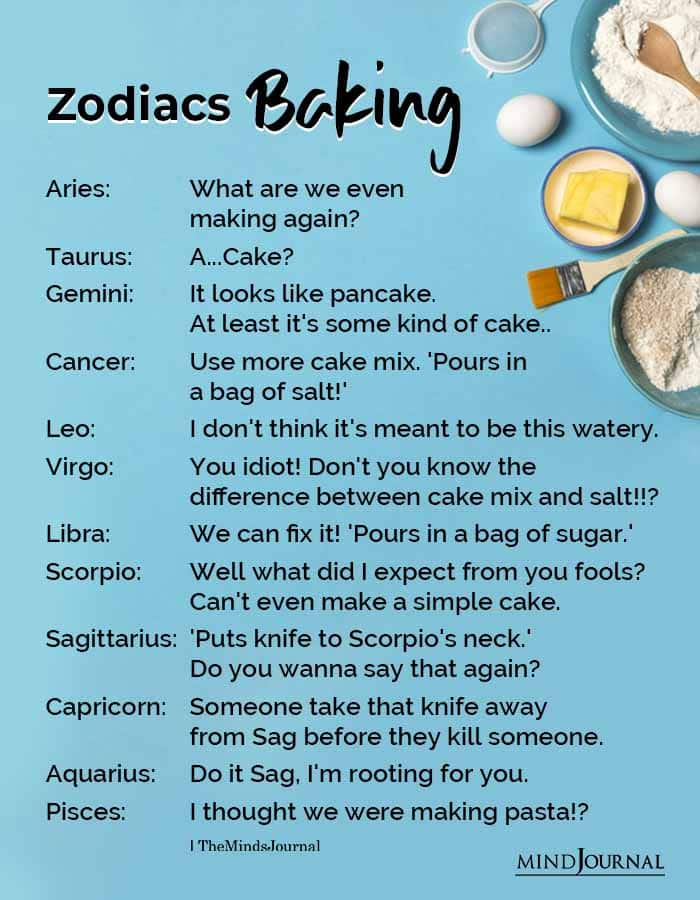 Virgo: You idiot! Don’t you know the difference between cake mix and salt!!?