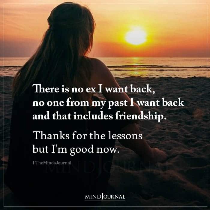 There is no ex I want back, no one from my past I want back and that includes friendship. Thanks for the lessons but I’m good now.