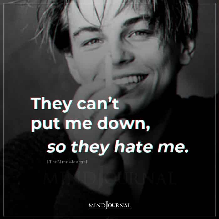 They can’t put me down, so they hate me.