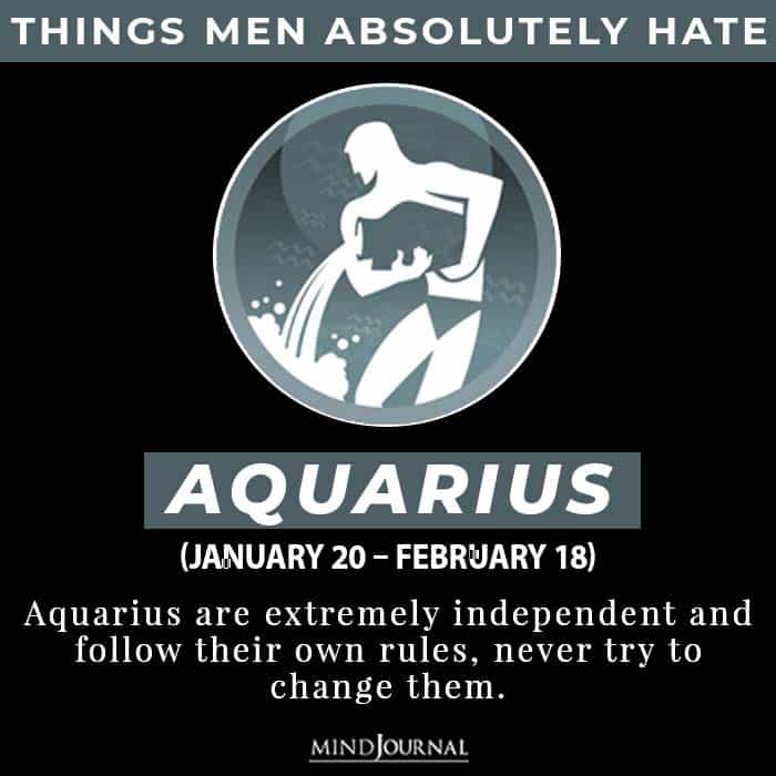 Aquarius men are extremely independent and follow their own rules, so, never try to change them. Originality is one of the most prominent characteristics of Aquarius men. They are unique. They have their own comfort zone and have an absolute distaste for nagging.