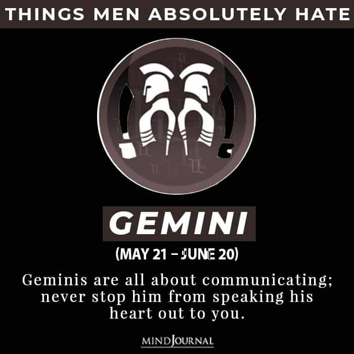 Geminis are all about communicating, never stop him from speaking his heart out to you. A Gemini man has a friendly nature and loves to communicate. For him, communication is the key and that is the way he can tell you exactly how he feels or thinks.