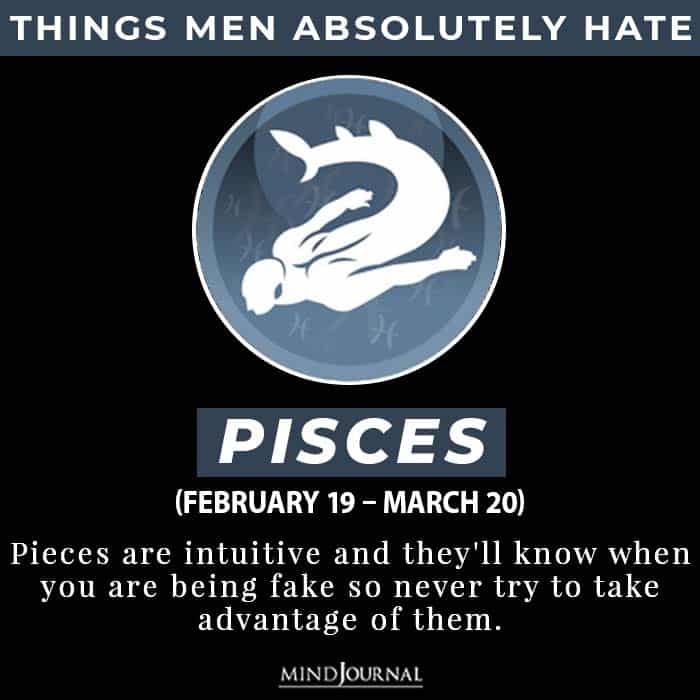 Pisces hates lying and rarely hurts anyone on purpose, so others doing this will Pisces man run away from them. After which you will have to go through an emotional rollercoaster, so just avoid all of that for safety reasons.