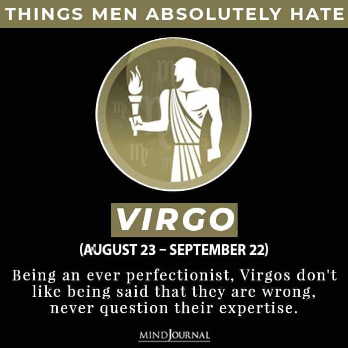 Being an ever perfectionist, Virgos don’t like being said that they are wrong, never question their expertise. Virgos hate disorder. They have a certain way of doing something. Don’t be arrogant around Virgos, they really can’t stand overly self-assertive people.