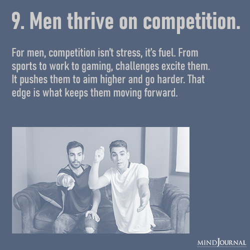 This one is a no-brainer. For many women, competition can sometimes feel very stressful and unnecessary. However, for men, it’s a different story altogether. For men, competition serves as fuel.