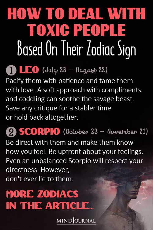 After all, the best way to deal with toxic people is to understand their zodiac personality traits and tweak your approach accordingly. So, letโs see how you can deal with toxic people based on their zodiac signs.