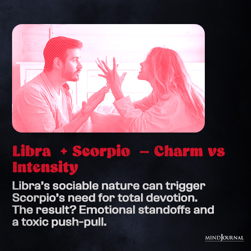 An angry Scorpio can be very dangerous and so does an out of balance Libra. Both of them together can be a toxic potion for their heart.