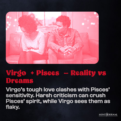 Virgo is a perfectionist and practical sign that lives in reality. Pisces is an imaginative and emotional sign that lives in dreams. When these two meet, they collide.