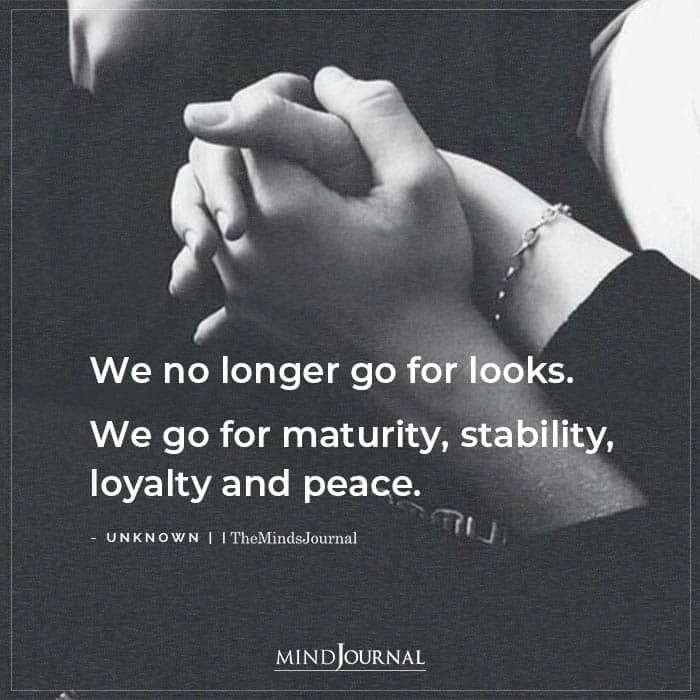 We no longer go for looks. We go for maturity, stability, loyalty and peace.