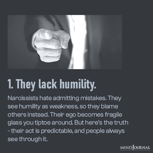 One of the biggest and most obvious weaknesses of narcissists is their utter lack of humility. Narcissists think admitting fault equals weakness, so instead, they project their flaws onto everyone else.