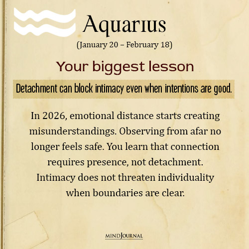 In 2026, Aquarius, you will notice moments where emotional distance will end up creating many misunderstandings. Zodiac lessons 2026 push you to stay present rather than observe from afar.