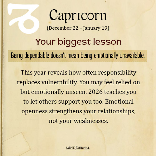 Capricorn, 2026 is going to highlight how often you lead with responsibility instead of vulnerability. You may feel needed but not deeply known. You are going to learn to let people support you too.