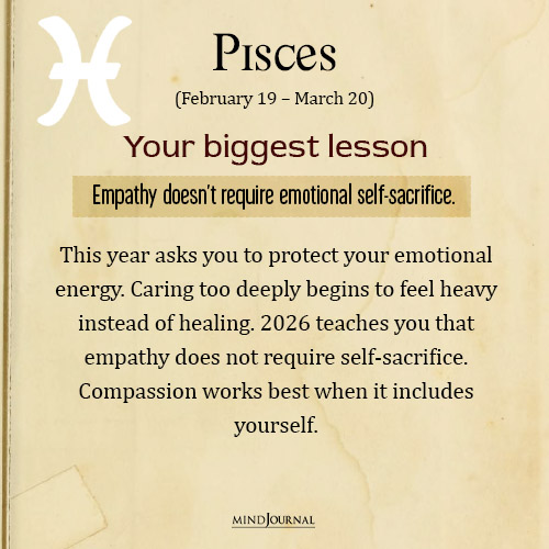 Pisces, 2026 is going to be all about drawing clear lines around emotional energy. You will slowly become aware of how often caring turns into carrying.