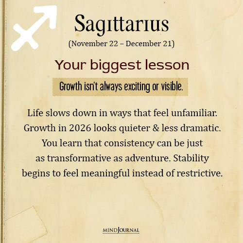 In 2026, Sagittarius, life may feel quieter than you would prefer. 2026 is going to show you that staying present in routine moments can be transformative. Patience with progress is a wonderful recipe, even though it may not look adventurous.
