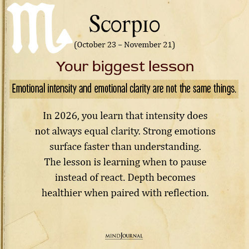 Scorpio, according to zodiac predictions 2026, you need to slow down your emotional reactions. You may feel deeply but still feel unsure. You need to understand the difference between intensity and understanding.