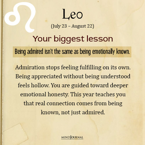In 2026, Leo, you will notice a shift in how validation feels. Applause doesn’t land the same way when deeper understanding is missing. Zodiac lessons 2026 push you toward relationships where you’re seen beyond your confidence.