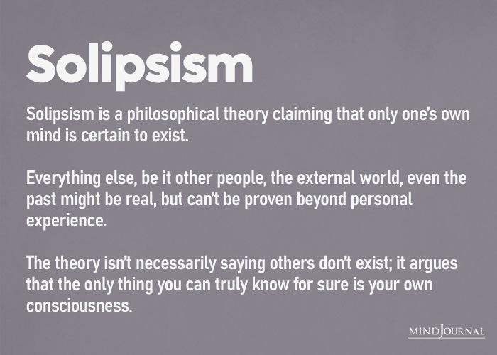 The theory isn’t necessarily saying others don’t exist; it argues that the only thing you can truly know for sure is your own consciousness.