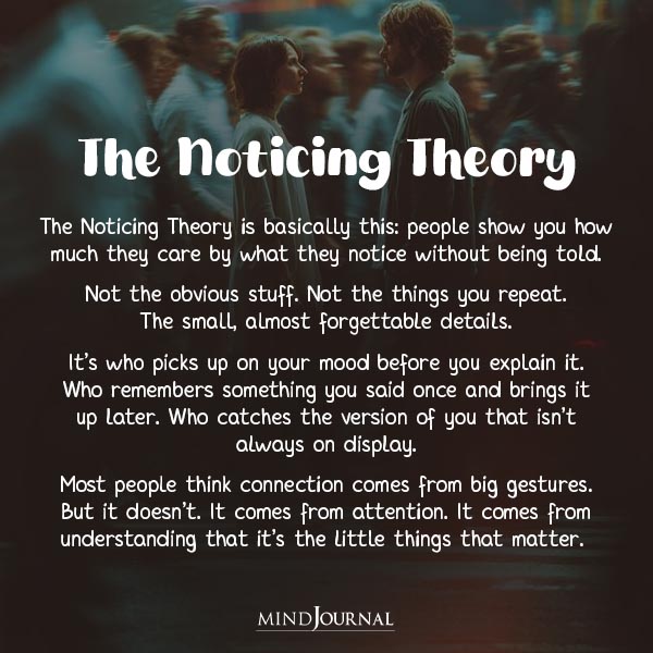 The Noticing Theory is something you don’t really think about, until you feel the absence of it. It’s that subtle difference between someone who’s just there and someone who’s actually paying attention.