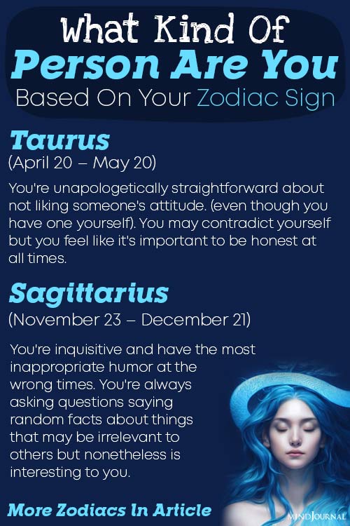 Those were all the zodiac personality traits. We hope this article on โWhat Kind Of Person Are Youโ helped you to identify the zodiac type of person you are and advance on your journey of self-discovery.