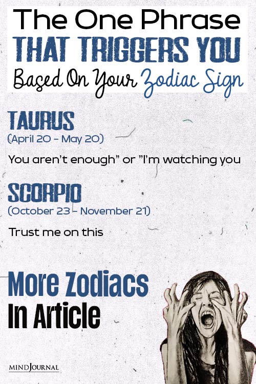 We have boiled down the oneliner phrases that are the emotional triggers of each zodiac sign. So to keep yourself on the safe side, check out the list of zodiac sign triggers and keep them in mind.