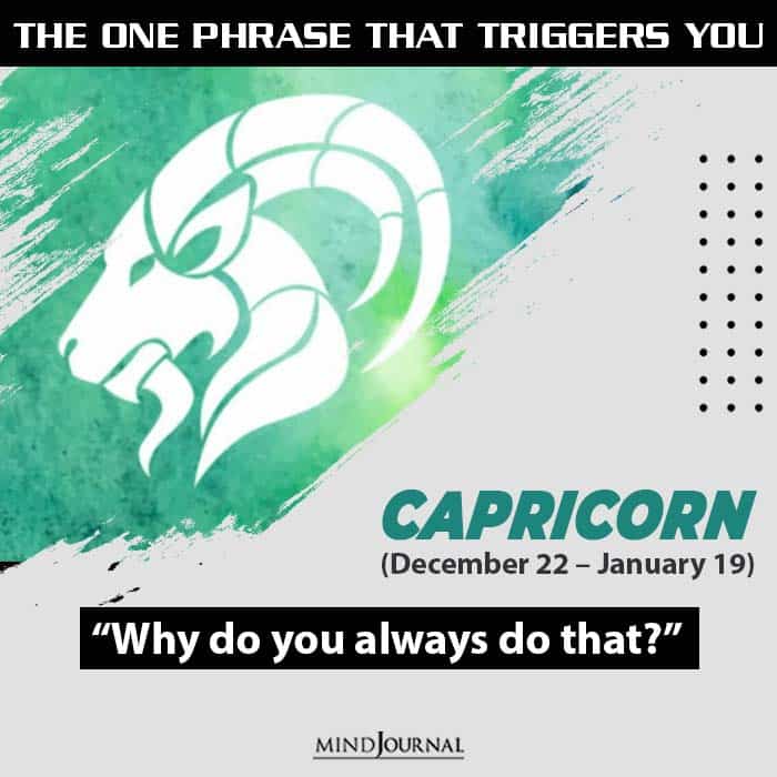 Capricorns are incredibly practical and disciplined. Members of this star sign hate judgemental people so when someone says statements like โwhy do you always do that?โ or โcanโt you ever stop doing this?โ