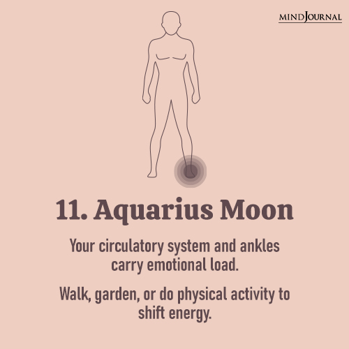 11. Aquarius Moon: Your circulatory system and ankles carry your emotional load.
