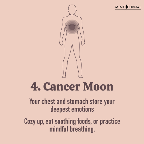 4. Cancer Moon: You carry heavy emotions in your chest and stomach.
