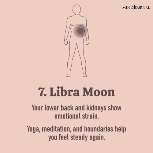 7. Libra Moon: Your stress shows in your kidneys and lower back as tension.