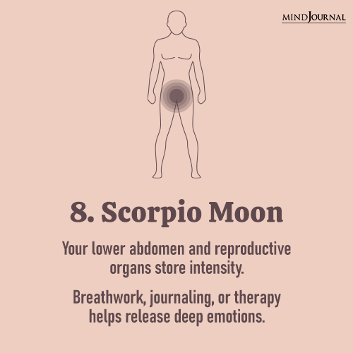 8. Scorpio Moon: Your lower abdomen and reproductive organs hold intense emotions.