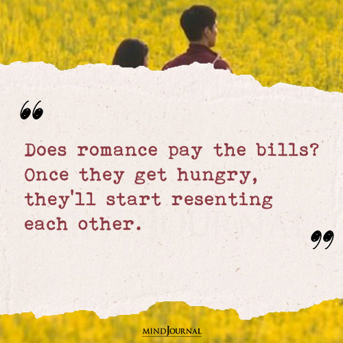 1. “Does romance pay the bills? Once they get hungry, they’ll start resenting each other.”