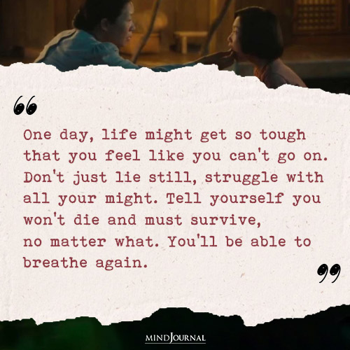 8. “One day, life might get so tough that you feel like you can’t go on. Don’t just lie still, struggle with all your might. Tell yourself you won’t die and must survive, no matter what. You’ll be able to breathe again.”