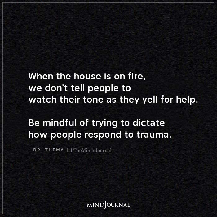 When the house is on fire, we don’t tell people to watch their tone as they yell for help. Be mindful of trying to dictate how people respond to trauma.