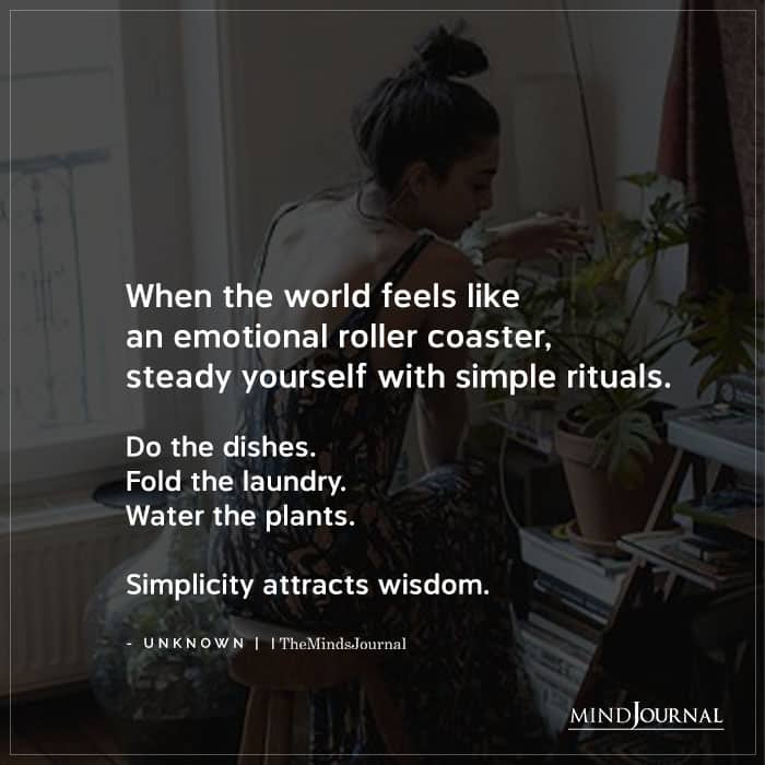 When the world feels like an emotional roller coaster, steady yourself with simple rituals. Â Do the dishes. Fold the laundry. Water the plants. Â Simplicity attracts wisdom.