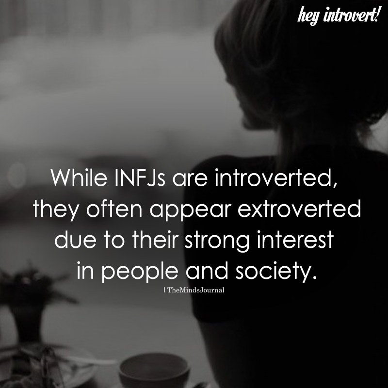 While INFJs are introverted, they often appear extroverted due to their strong interest in people and society.