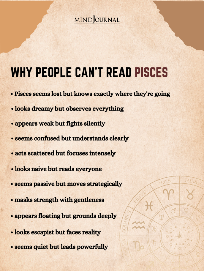 They don’t confront things loudly, but their strength lies in endurance. Pisces can carry emotional weight and still keep going without making it obvious. - seems confused but understands clearly