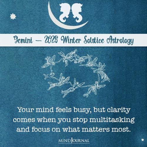 Your mind is active, full of ideas and questions, but you may feel mentally scattered. The solstice asks you to pause and sort through the noise. Not everything needs your attention at once. By focusing on what truly matters, you’ll feel calmer and more in control. Clarity comes when you simplify, not when you multitask.
